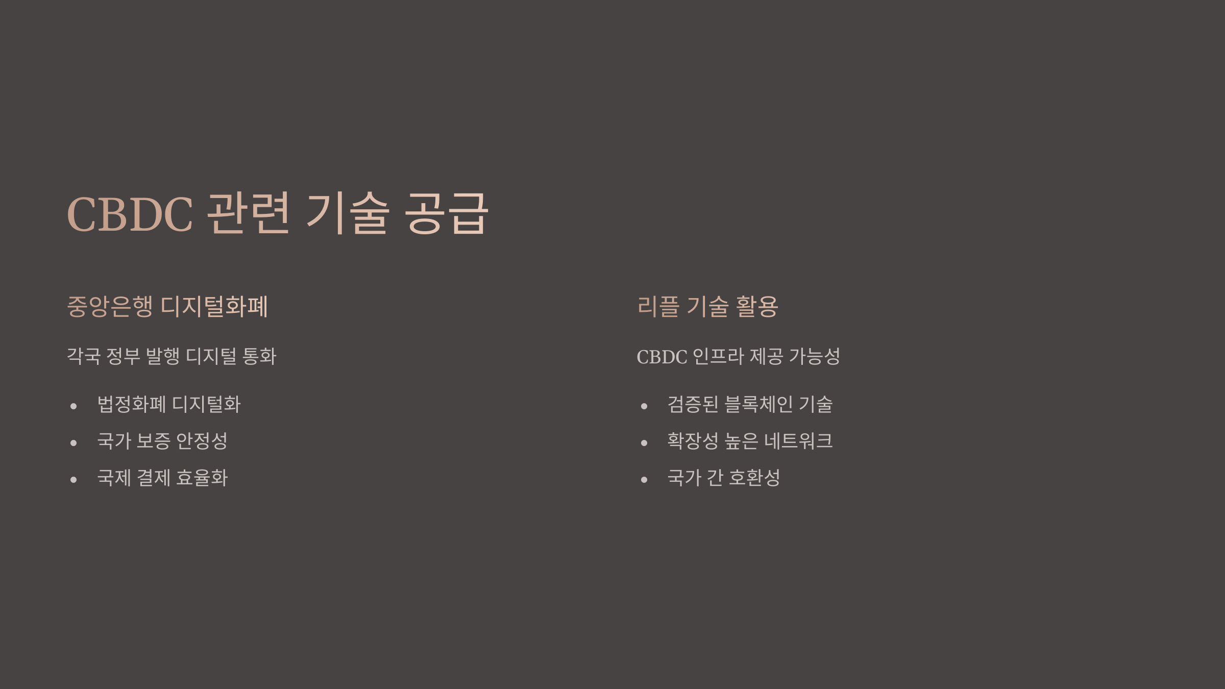 주로 은행 간 송금, 크로스보더 결제에 사용돼요. 빠르고 수수료가 저렴한 게 강점이죠.