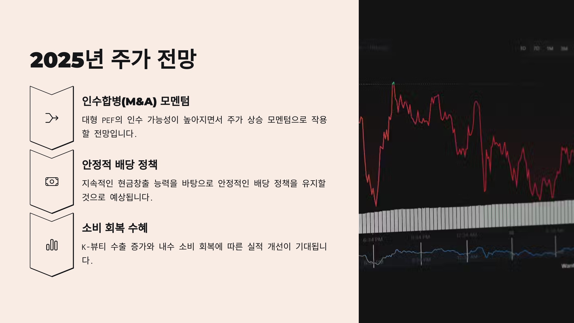 2025년에도 실적은 다소 부진할 것으로 예상되지만, 하반기에는 점진적 회복이 가능하다는 의견도 있어요. 특히 중국 시장에서의 매출 감소폭이 완화되거나, 동남아·북미 시장에서의 확장이 이루어진다면 실적 반등의 기회가 생길 수 있습니다.