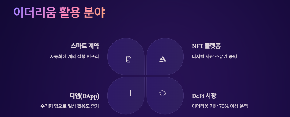 - DeFi 시장의 70% 이상이 이더리움 기반으로 운영 중